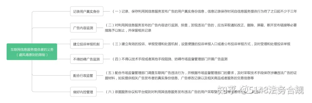 《办法》第十六条提出了六项义务性规定,违反这些规定,互联网信息服务提供者将可能失去避风港原则的保护。笔者整理图例如下: