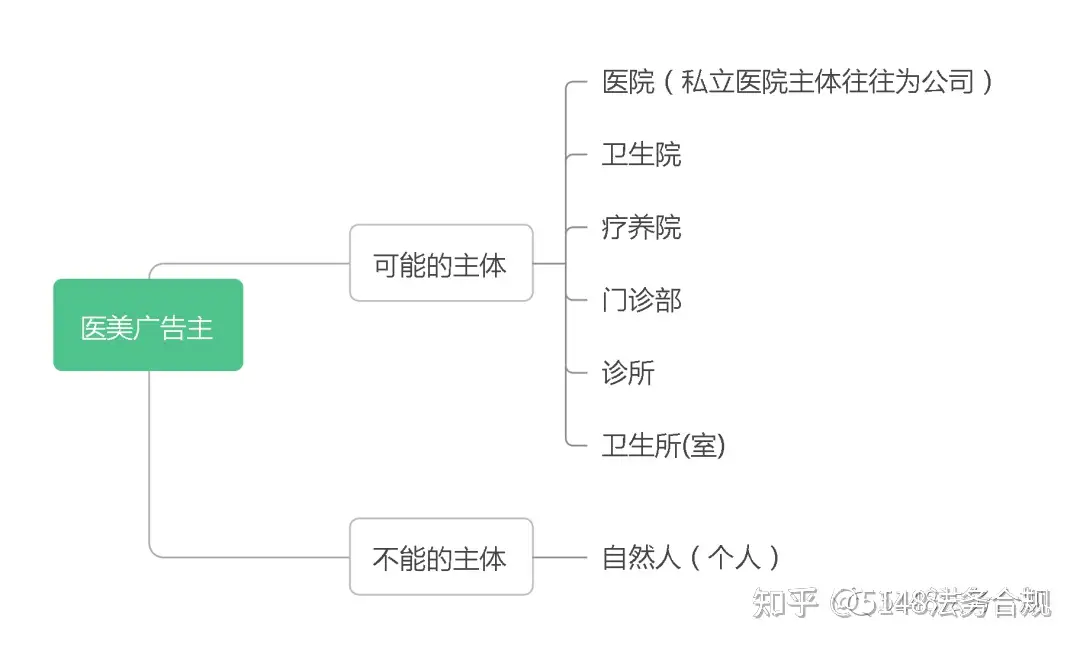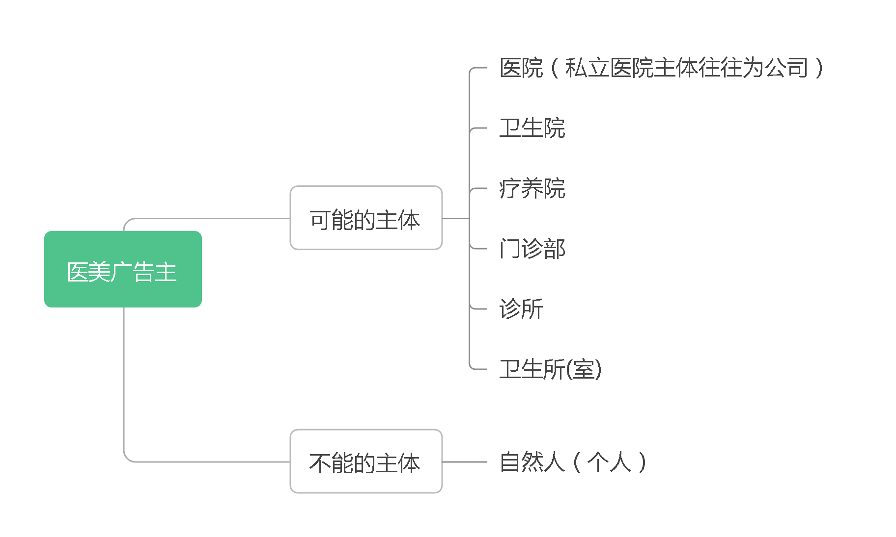 那么哪些主体具备做医美广告主的资质呢?根据《医疗机构管理条例》第二条规定:本条例适用于从事疾病诊断、治疗活动的医院、卫生院、疗养院、门诊部、诊所、卫生所(室)以及急救站等医疗机构。理论上前述的这些主体可能成为医美广告主,但从实际的市场经营情况看,以下的分类比较常见: